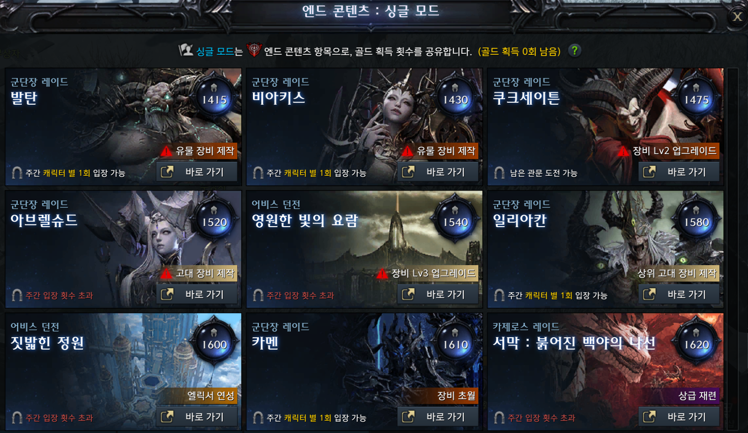 각 레이드별 싱글, 노멀, 하드 클리어골드입니다!